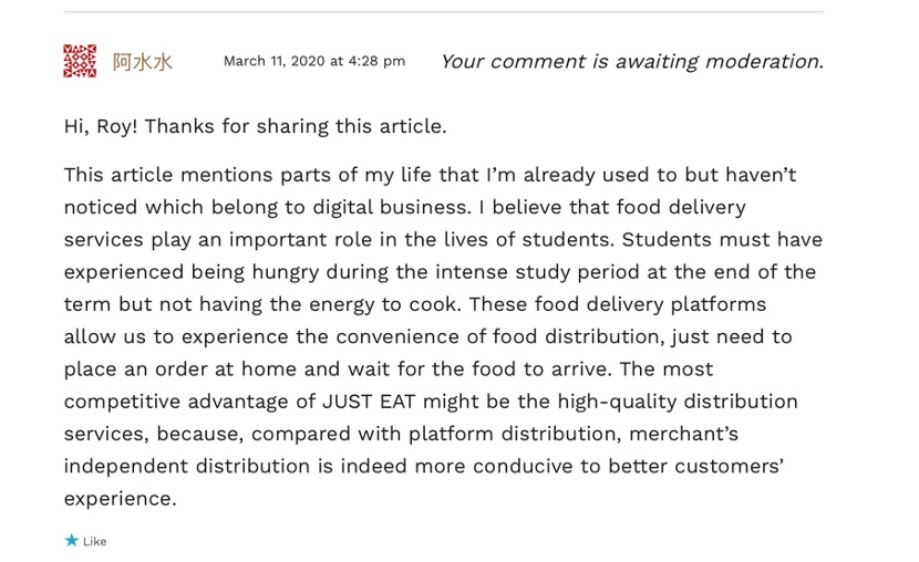 The second blog is related to one of the hottest topics, coronavirus. During my writing period, I have to say the fear of coronavirus infected my life. I am afraid of the crowds and feel so worried when I am hanging out. The anxious makes me choose to stay at home, which means I can’t get an approach to any necessities expect booking them on the websites of groceries. Ocado is one of the sites I used most often only because I can get free delivery for the first three months, which is indeed attractive to me. I completed my order as usual. Suddenly, I realized Ocado is a kind of digital businesses, which rely heavily on the Internet and don’t have any physical stores. The technological mindset of Ocado gains a competitive advantage for it in the industry.